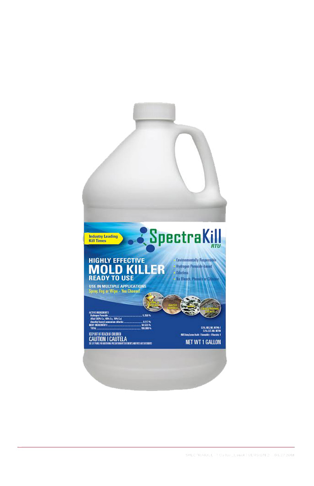 SpectraKill® RTU is a water-based formulation that that combines hydrogen peroxide and benzalkonium chloride to form a powerful, dual-action super-killing Mold remediator and fungicide.