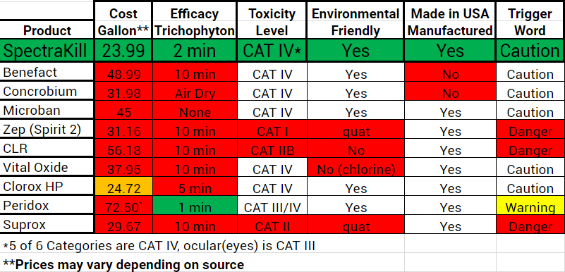 SpectraKill® is different than other industry mold remediation products because of its eco-friendly toxicity profile (CAT IV*) in a no-mix formulation, with industry-leading mold Kill Times!